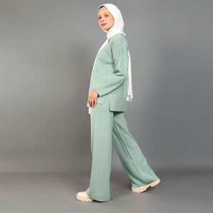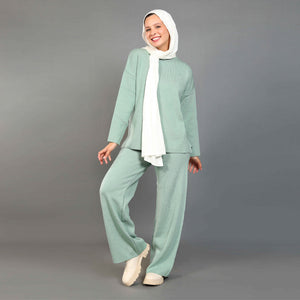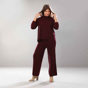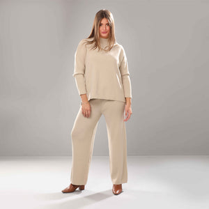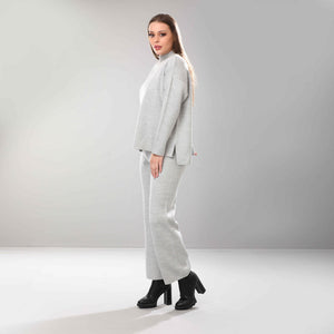 These relaxed, lightweight knitted trousers feature a wide-leg silhouette and are best paired with the coordinating long knitted jumper for a chic, comfy ensemble perfect for lounging or casual outings.
