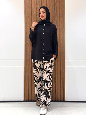 Designed for both casual and formal wear, this oversized shirt with rolled-up sleeves offers the perfect blend of elegance and ease. Its relaxed fit ensures all-day comfort, while the minimalist design makes it a staple for simple yet refined looks. Style it effortlessly with solid-colored skirts for a classic touch or patterned skirts for an elevated statement, making it a versatile must-have in your wardrobe.