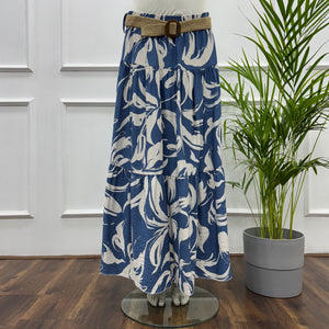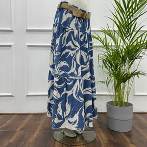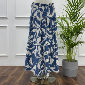 Tiered Maxi Patterned Skirt -Spanish Linen- Blue